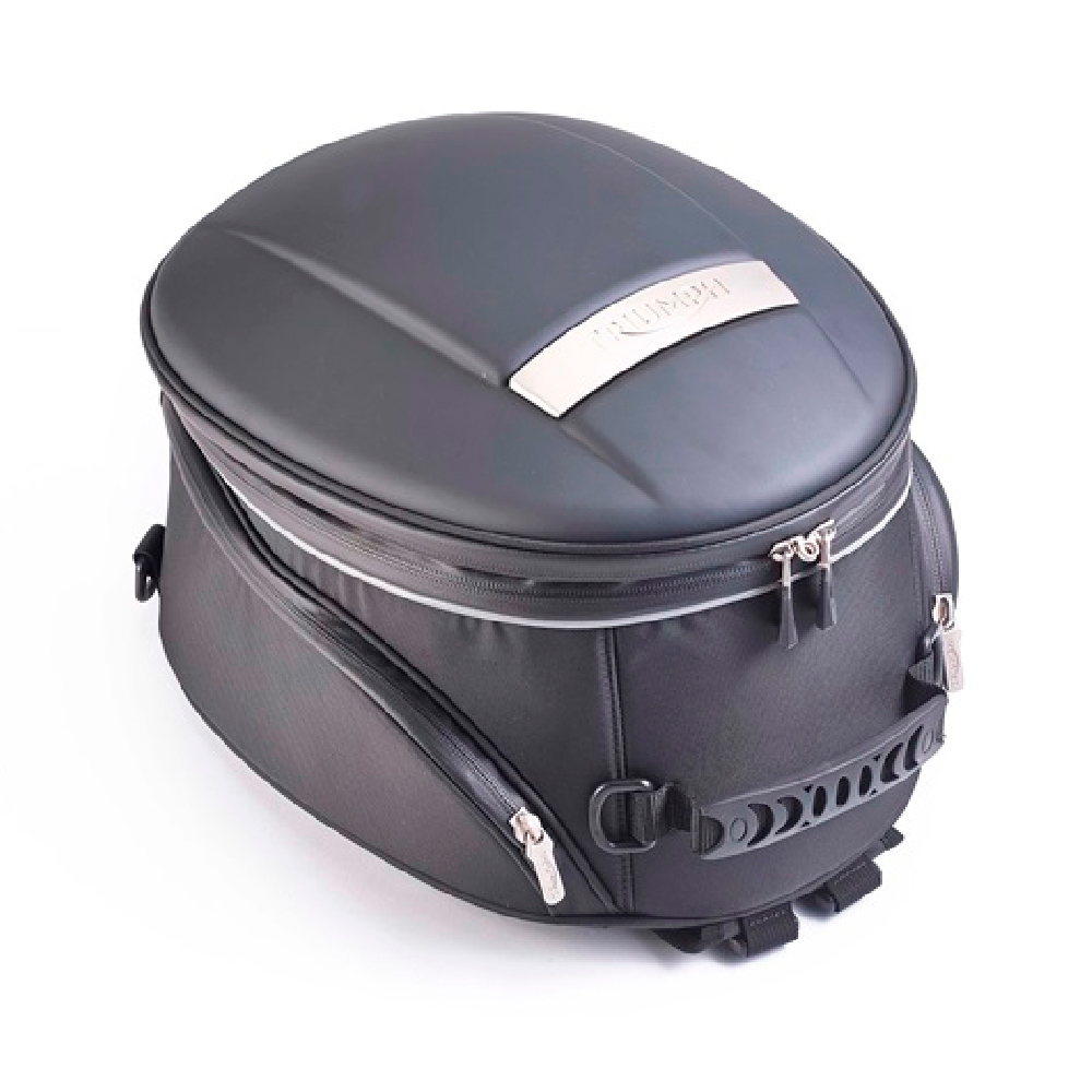 Bagageiro esportivo moldado personalizado com capacidade para 15 litros de bagagem, podendo ser aumentada para 20 litros. As características incluem impermeabilidade, bolsos interiores e exteriores para guardar objetos pequenos, e zippersr à prova de água. Material de base antiderrapante e malha revestida com feltro protegem o tanque de combustível. Alças ergonômicas e zippers para facilidade de utilização. Fornecido com cobertura para a chuva, bolsa para mapa e alça a tiracolo.