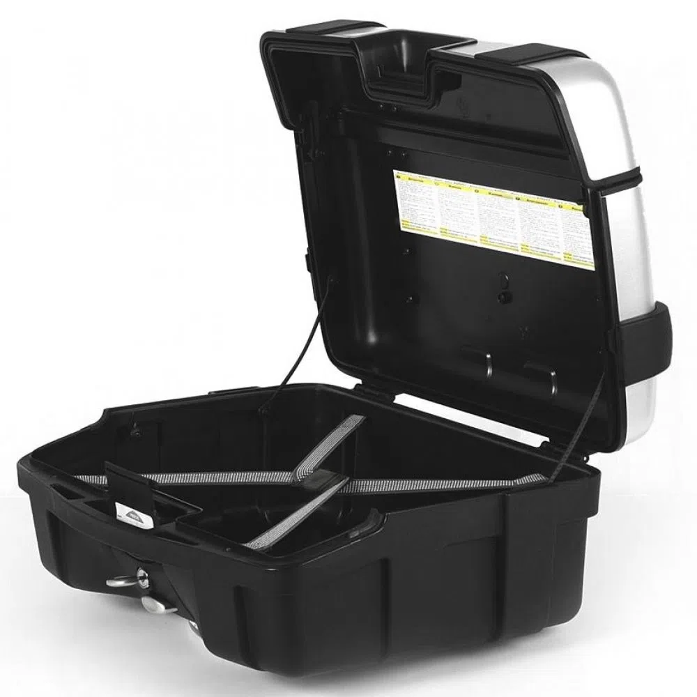 É feito de materiais resistentes e duráveis, como plástico de alta qualidade, que é capaz de suportar as condições adversas encontradas durante viagens de moto. Ele possui uma capacidade de 33 litros, o que significa que oferece bastante espaço de armazenamento para guardar itens essenciais, como capacetes, roupas de chuva, luvas e outros objetos pessoais.