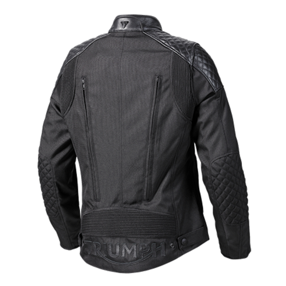 Jaqueta para motociclista clássica com decote piloto em mesh têxtil e painéis de couro. Com ombros costurados acolchoados, aplique de couro na parte inferior das costas e forro à prova de banho com zíper.